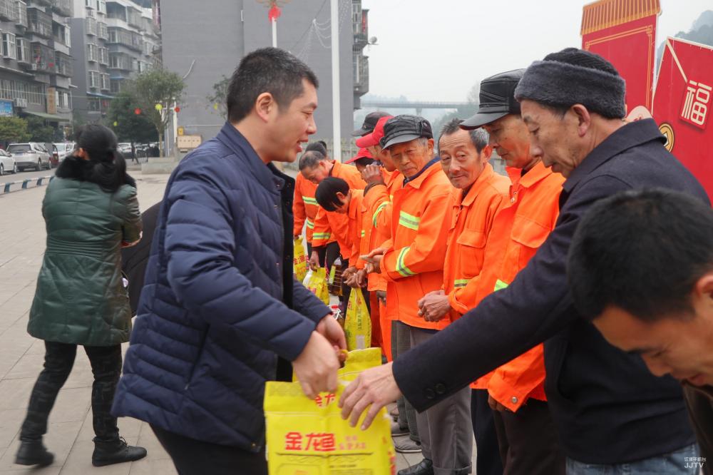 活动向坚守在一线的环卫工人送上镇党委、政府的关怀和新春的祝福。对环卫工人们的辛勤劳动和认真坚守表示衷心地感谢。同时,向环卫工人发放米和油等慰问品。希望广大环卫工人们再接再厉,维护好春节期间的环境卫生,最后祝大家节日快乐、身体健康、阖家幸福!