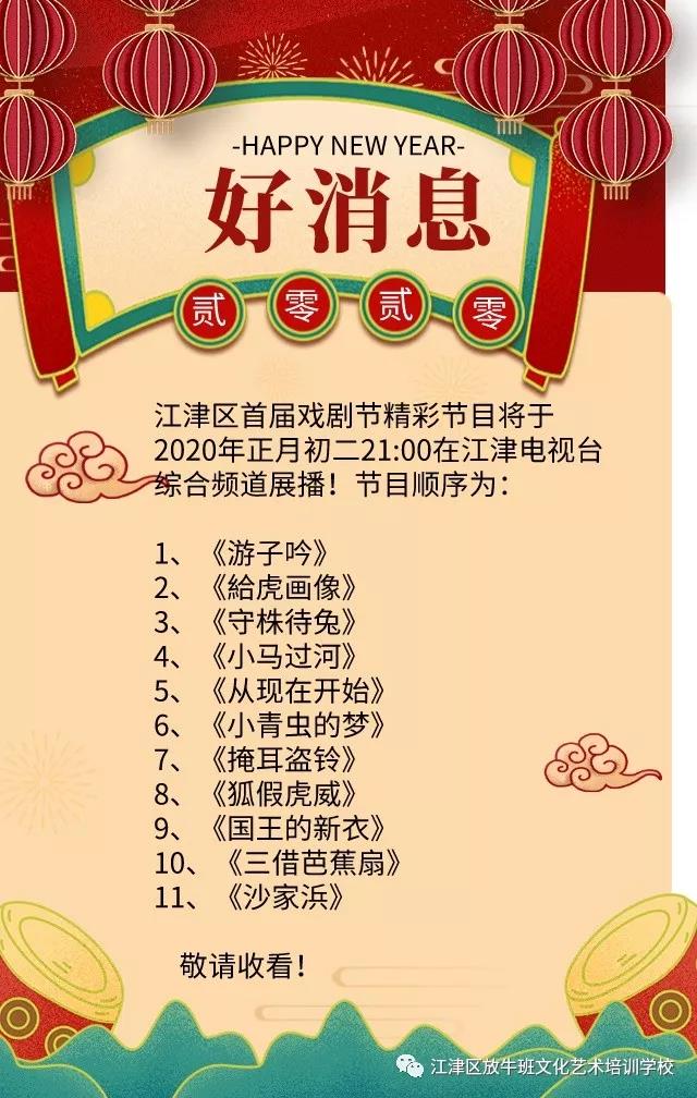 今晚9:00 ,放牛班儿童戏剧专场晚会亮相江津电视台!敬请收看!