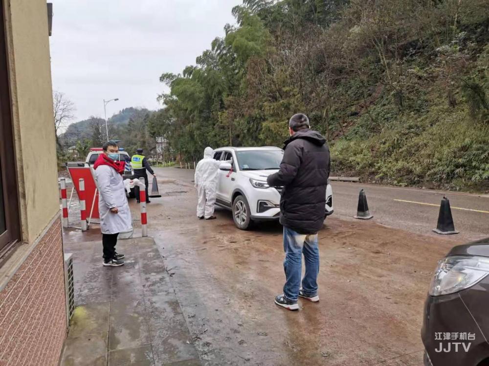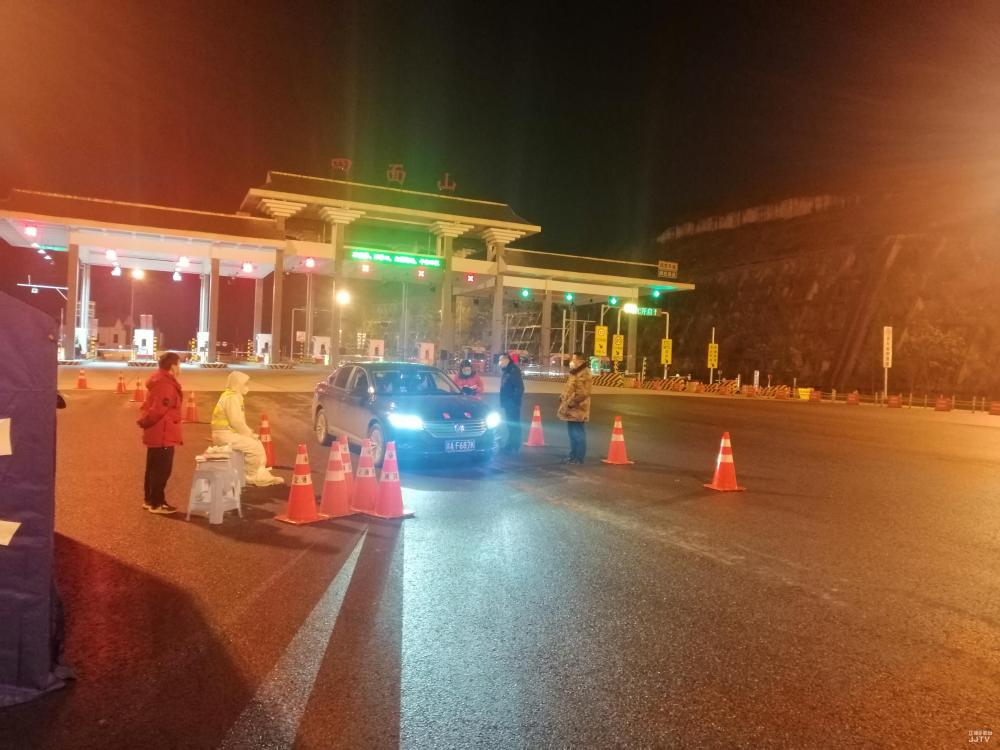 四面山镇、四面山派出所、四面山卫生院夜间在高速公路哨卡点检查过往车辆并测量体温