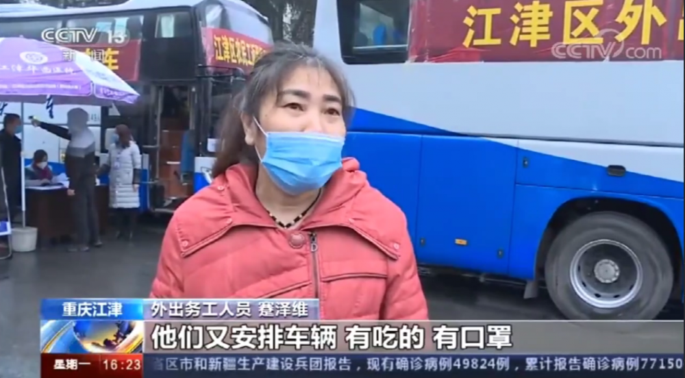 早上7点多,在重庆江津客运中心,61名外出务工人员在这里登记,测体温后一起乘坐大巴车到重庆火车北站乘坐高铁前往浙江绍兴。
