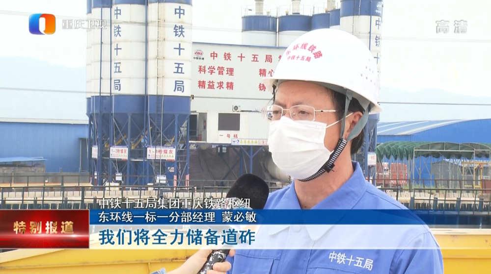 中铁十五局集团重庆铁路枢纽东环线一标一分部经理 蒙必敏:我们将全力储备道砟,加大施工人员及设备投入,力争实现五月份铺架目标。(来源:重庆电视台)